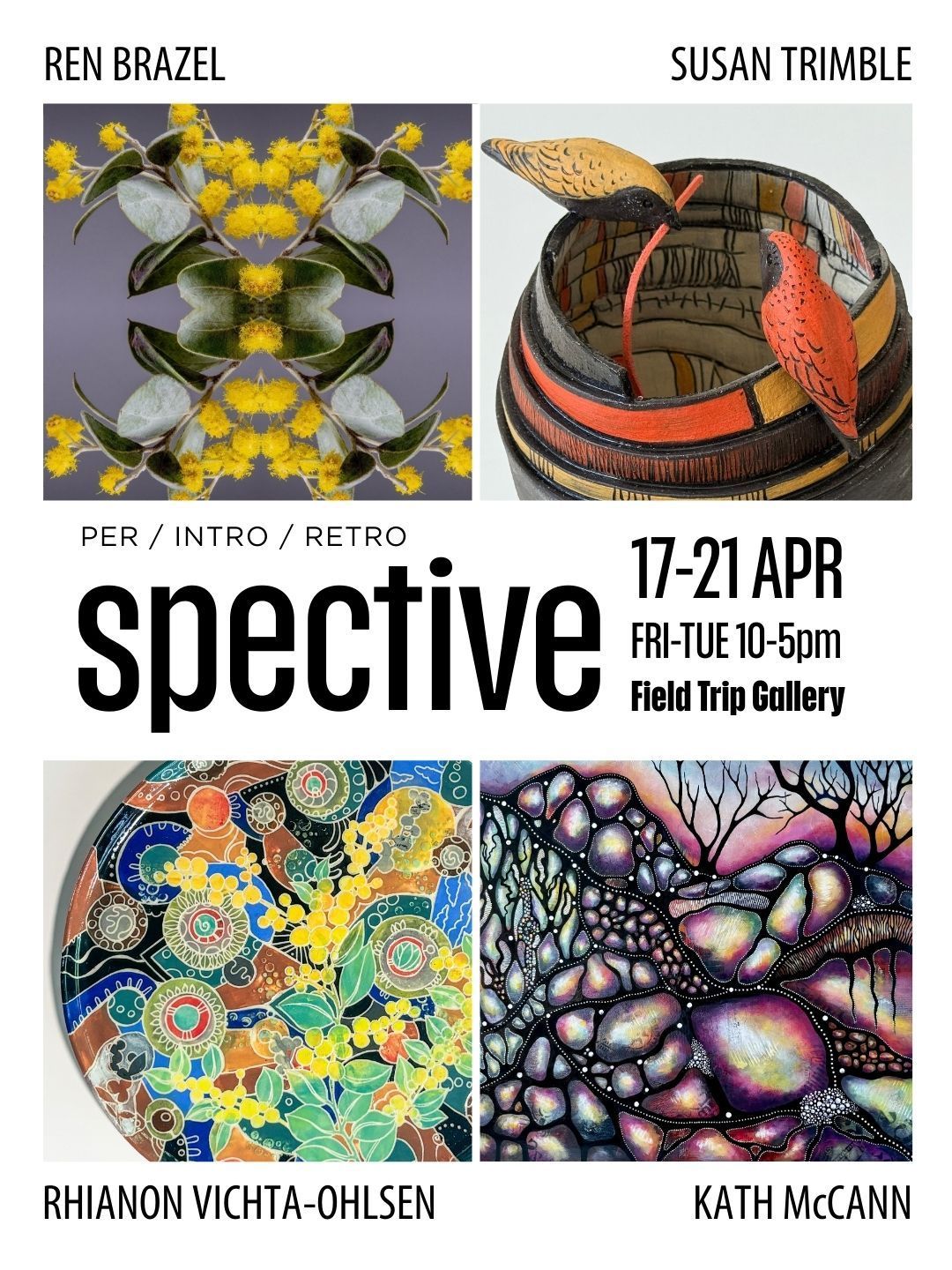 A Group Exhibition featuring works by Ren Brazel, Kath McCann, Susan Trimble and, of course me - Rhianon Vichta-Ohlsen.